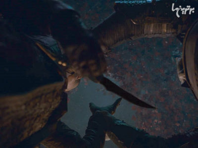 ۱۵- آریا خنجرش را دست همانجای بدن پادشاه شب فرود کرد که بچههای جنگل هنگام خلق او کرده بودند