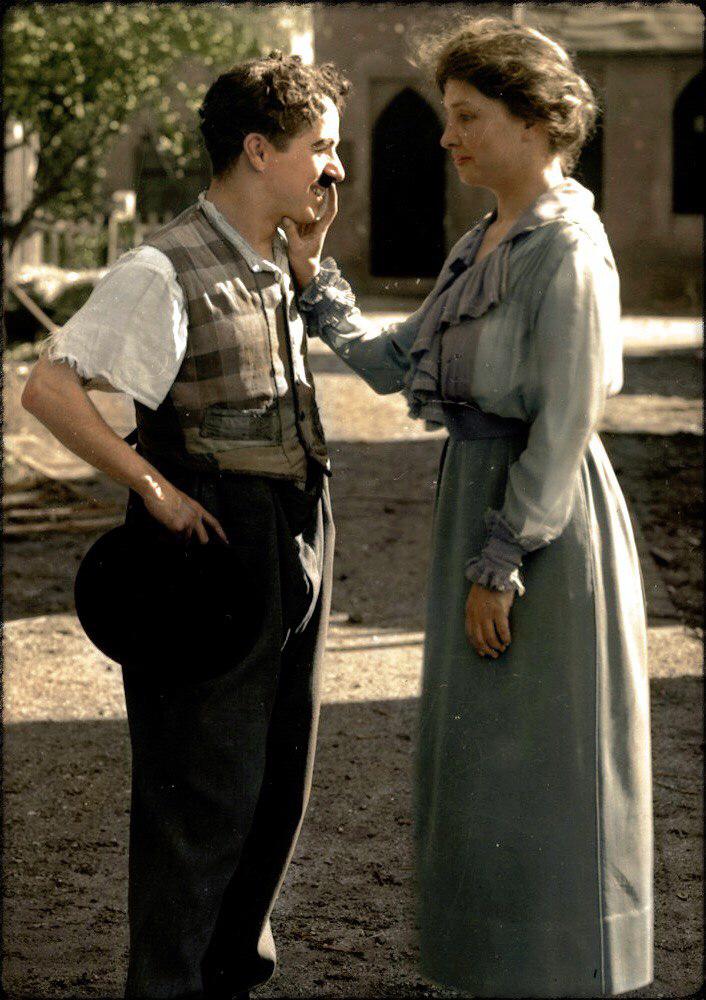این عکس مربوط به ملاقات هلن کلر با چارلی چاپلین سر صحنه فیلم «سانی ساید» در سال ۱۹۱۹ است.