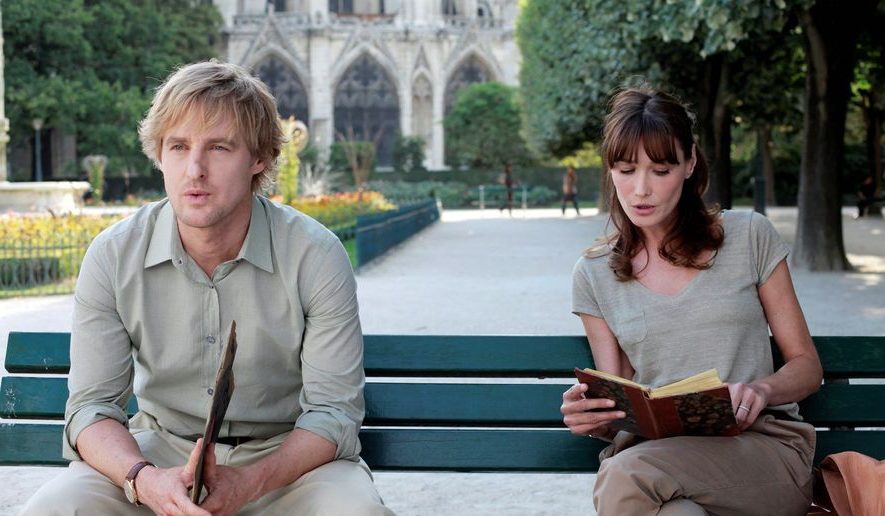 در فیلم کمدی «نیمه شب در پاریس» ساخته سال ۲۰۱۱ به کارگردانی وودی آلن، شخصیت اصلی گیل (با بازی اوون ویلسون) که همراه با نامزدش تعطیلات خود را در پاریس می‌گذرانند، به صورت اتفاقی خود را در پاریس دهه بیست می‌یابد. جذابیت گذشته و معاشرت با دایره نویسندگان و روشن‌فکران و آن دوره از جمله اسکات فیتزجرالد، ارنست همینگوی، گیل را وا می‌دارد که به سفر در زمان حال و دهه بیست ادامه دهد. او در دهه بیست با زن جوانی به نام آدریانا آشنا می‌شود. در صحنه‌ای از فیلم، گیل به صورت اتفاقی کتاب خاطرات آدریانا را کتاب‌فروشی های اطراف رود سن یافته‌ است از یک راهنمای گردشگری (کارلا برونی) می‌خواهد که برایش قسمت‌هایی از آن را برایش از فرانسه بخواند و ترجمه کند. در این صحنه، اوون ویلسون و کارلا برونی بر روی نیمکت پارکی پشت به کلیسای جامع نوتردام نشسته‌اند. منبع: بانی فیلم